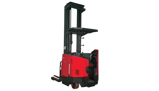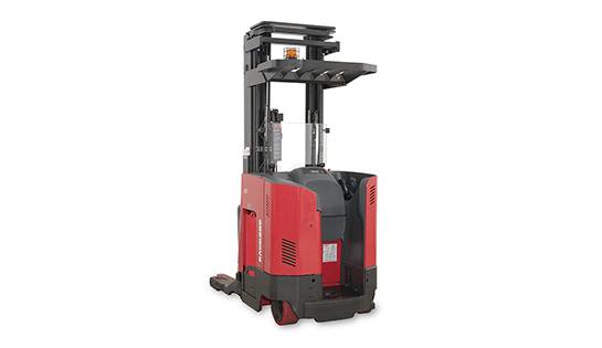 The Raymond 7500 Reach-Fork Truck with Universal Stance provides greater visibility.